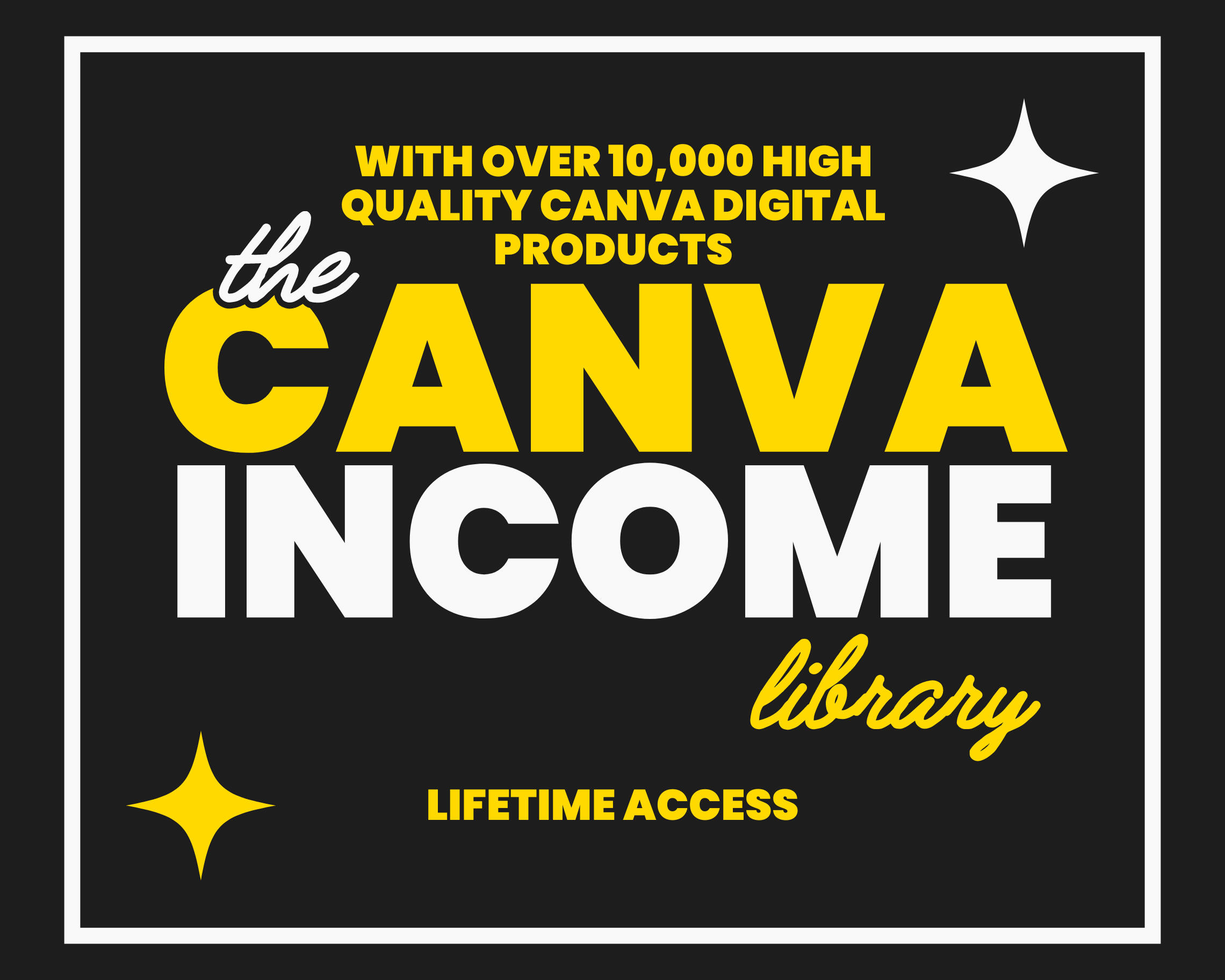 The full Canva Income library with over 10,000 readymade Canva digital products to help you make passive income